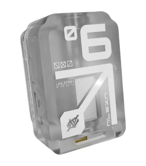 Alexa Six RBA Atomizer şeffaf tanklı, modern tasarımlı elektronik sigara parçası.