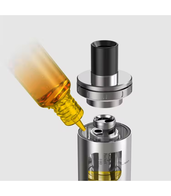 PockeX, 2 ml tank kapasitesi ile günlük kullanım için yeterli e-likit hacmi sunar. Paslanmaz çelik ve cam malzemeden üretilen tank, dayanıklılığı ve şık görünümüyle öne çıkar. Kullanıcılar, kolay üst dolum sistemi sayesinde e-likitlerini zahmetsizce doldurabilir.