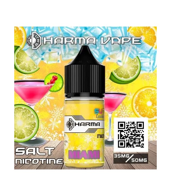 Dharma Miami Salt Likit, limon, yeşil limon, nane ve hafif buz aromalarının birleşimi ile ferah ve canlı bir vaping deneyimi sunar. 30 ml şişe, 35/50 mg nikotin seçenekleri ve pod mod cihazlarla uyumlu premium formül ile her nefeste taze ve tatmin edici bir içim sağlar.