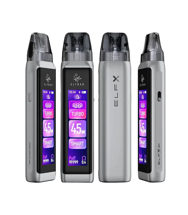 Elf Bar ELFX Ultra Vape Pod Kit, dokunmatik ekran, özelleştirilebilir LED ışık ve RGB tema seçenekleriyle dikkat çeker. 1500mAh bataryası, 0.6 Ohm ve 0.8 Ohm mesh coil pod seçenekleriyle hem aroma hem buhar performansı sunar. Turbo ve Eco modları ve Infinite Airflow sistemine sahip olmasıyla MTL ve DTL içim tarzları arasında geçiş yapabilen, hem görsel hem işlevsel bir cihazdır.