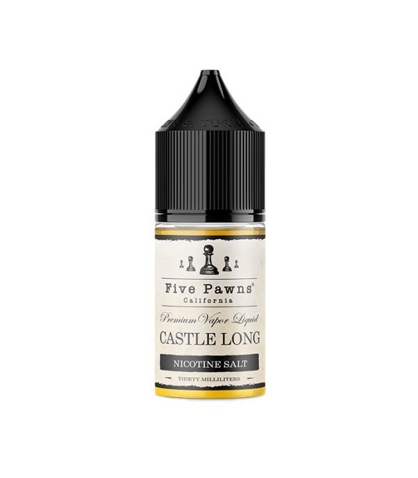 Five Pawns Castle Long Salt, sofistike bir tada sahip lüks bir likit. Kentucky Bourbon, Kavrulmuş Badem, Madagascar Vanilya, Esmer Şeker, Hindistan Cevizi aromalarının mükemmel birleşimiyle zengin bir deneyim sunar.