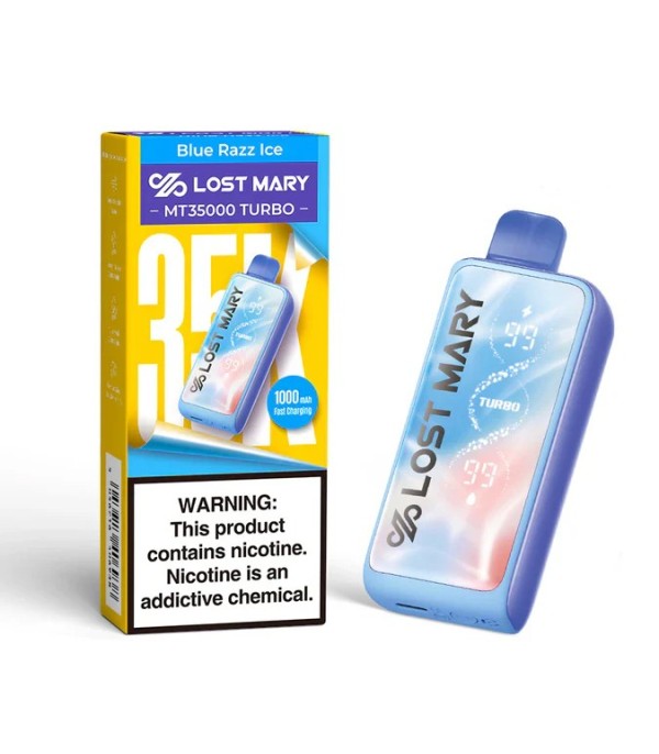 Lost Mary MT35000 Turbo, yaklaşık 35.000 puff’lık yüksek çekim kapasitesi, turbo modu ve mesh coil teknolojisi ile tek kullanımlık vaping deneyimini yükselten bir cihazdır. Blue Razz Ice (Mavi Ahududu Buz), Ice Mint (Buz Nane), Strawberry Ice (Çilek Buz) gibi meyvemsi ve buzlu aromalarla gelir. Hazır likit ve coil ile bakımsız kullanım sunar; aroma yoğunluğu ve kullanım pratikliği isteyenler için ideal bir seçimdir.