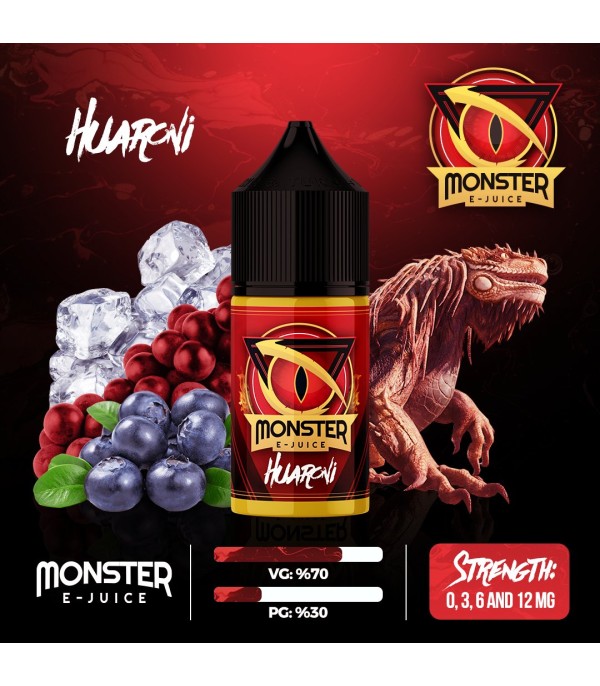 Monster Huaroni E-Likit şişesi, yaban mersini, ahududu ve buz efektli
