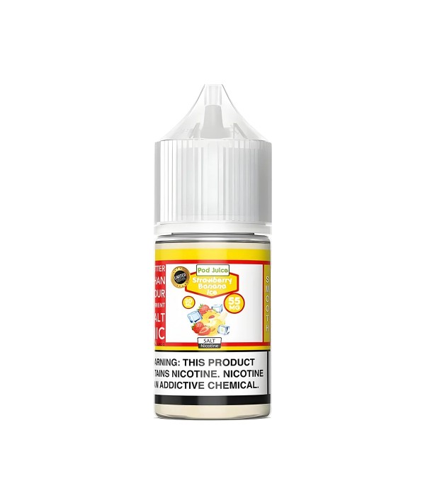 Pod Juice Strawberry Banana Ice Salt Likit, tatlı çilek ve olgun muz aromalarının buzlu ferahlıkla birleştiği dengeli ve kremsi bir elektronik sigara likitidir. 50VG / 50PG oranı sayesinde pürüzsüz içim ve yoğun aroma deneyimi sunar. 30 mL şişede; 35 mg ve 55 mg nikotin seçenekleriyle üretilmiştir.