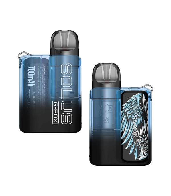 Smok Solus G Box Pod Mod 700mAh mavi şeffaf gövde ve kartal desenli.