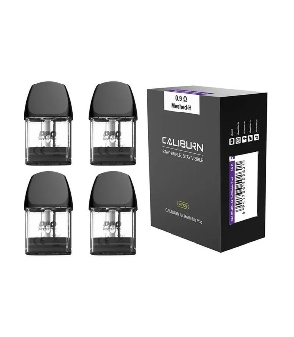 Uwell Caliburn A2 Kartuş 0.9Ω Meshed-H, 4 Adet Siyah Yedek Pod