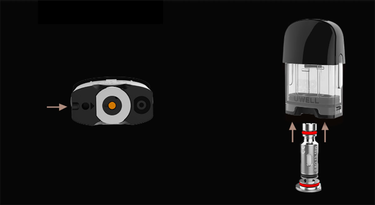 Kartuşlar, doldurabilmeniz için aynı çıtçıtlı üst ağızlığa sahiptir ve doldurma sırasında havanın çıkmasına izin vermek için küçük bir delik vardır. Doldurma deliğinde, taşmayı ve sızıntıları azaltmak için bir silikon bağlantı noktası bulunur. Bölme şeffaf olduğundan sıvı seviyenizi kolayca görebilirsiniz. Ana cihaza bir tıklama ile yerinde güzel bir şekilde bağlanır, mıknatıs kullanılmaz. Orijinal Caliburn/KoKo kartuşlarından farklıdır, daha yuvarlak şekillidir ve biraz daha kalındır ancak yine de rahattır. Likit seviyesi pencereleri de biraz daha geniş.
