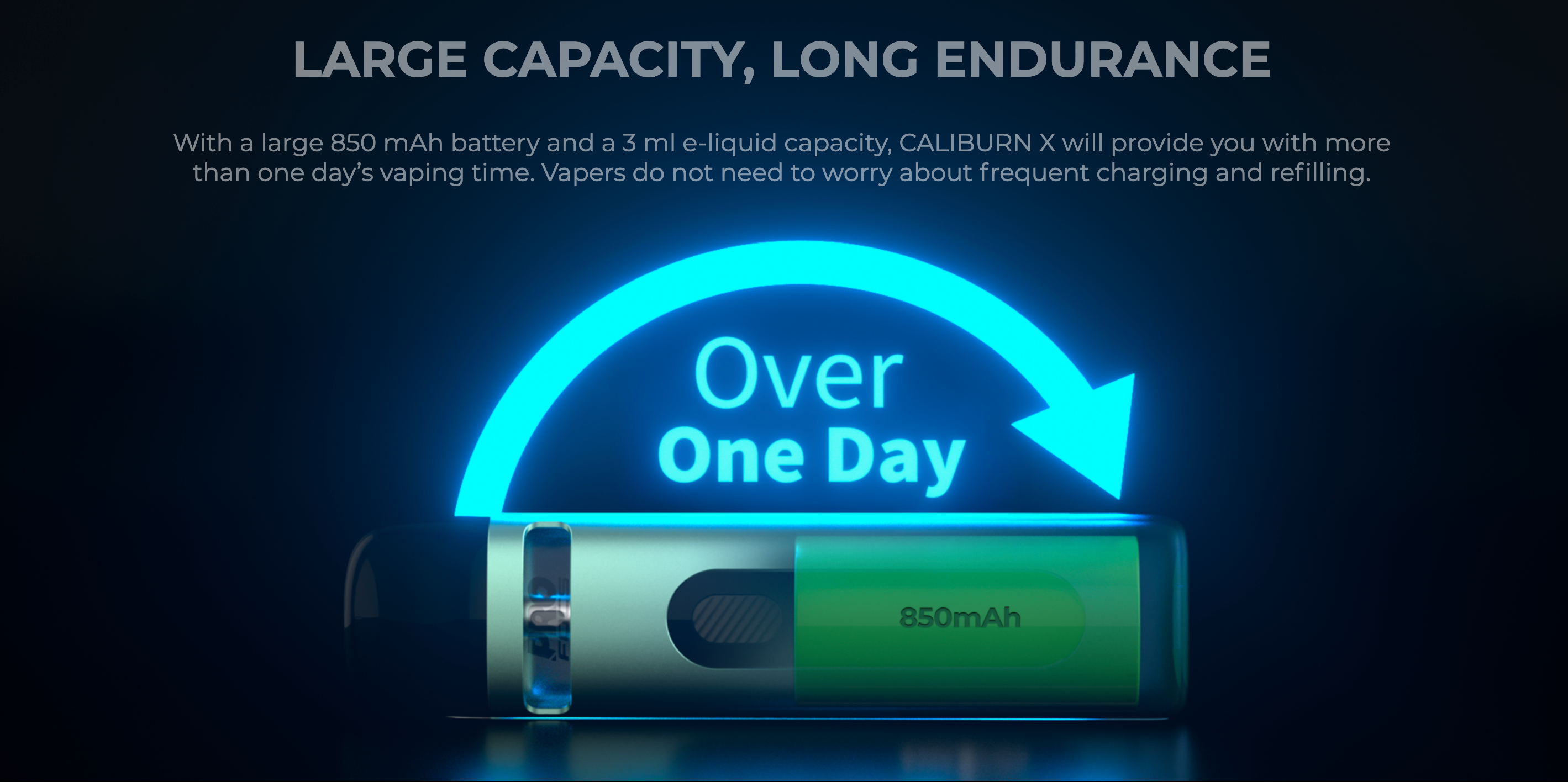 Uwell Caliburn X Pod Mod, sadece bir tuşa sahip olmasıyla, pod mod deneyimi yaşamamış kullanıcılar için bile kolaylıkla kullanılabilir. Cihazı açmak, güç seviyesini seçmek ve buharlamaya başlamak için bu tek düğmeyi kullanabilirsiniz. İşiniz bittiğinde, cihazı beş kez basarak kilitleyebilirsiniz. Kilidin açılmasıyla birlikte, nefes sensörü sayesinde sadece nefes alarak buharlama yapabilirsiniz. Bu nefes alma aktivasyonu ve cihazın ürettiği az miktardaki buhar, Caliburn X'in sigaraya çok daha yakın bir his verdiği anlamına gelir. Ayrıca, mesh coiller kullanılarak daha zengin bir lezzet deneyimi elde edilebilir.