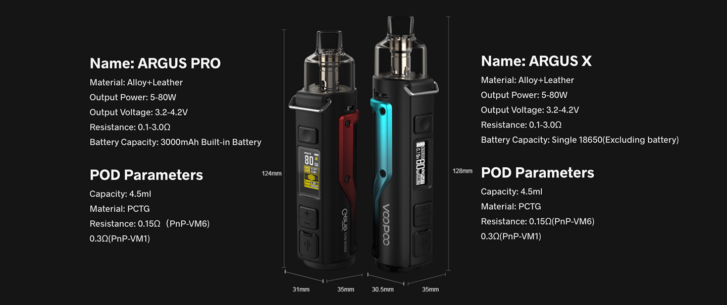 Voopoo Argus X Pod Mod, tek bir harici 18650 pil ile çalışan ve 5-80 watt çıkış gücü sağlayan güçlü bir pod mod cihazıdır.