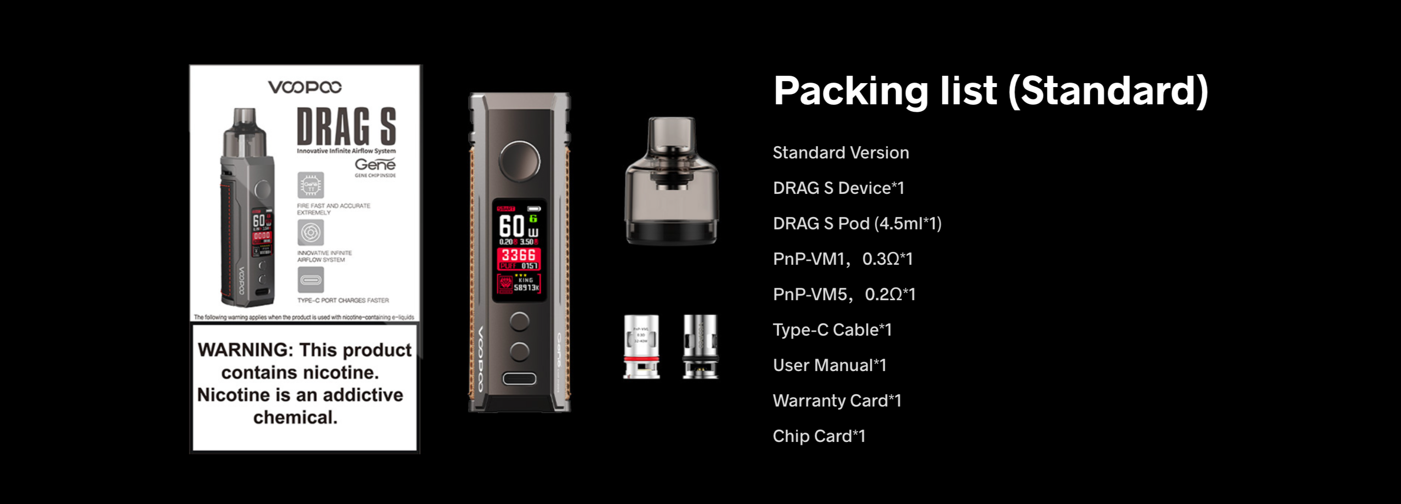 Drag S’in kavisli ve ergonomik tasarımı, cihaza mükemmel bir tutuş hissi kazandırıyor ve elinizde rahatlıkla taşınabilecek şekilde tasarlanmış. Bir kez elinize aldığınızda, aradığınız cihazın bu olduğunu fark edeceksiniz. Voopoo’nun PnP Coil serisi ile tam uyumlu olan Drag S, farklı içim tarzlarına uygun geniş bir coil yelpazesi sunar.