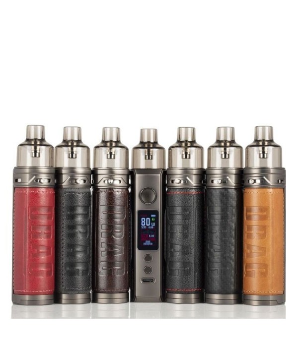 Voopoo Drag X Pro Pod Mod çeşitleri: Kırmızı, Siyah, Kahverengi deri ve Gri.