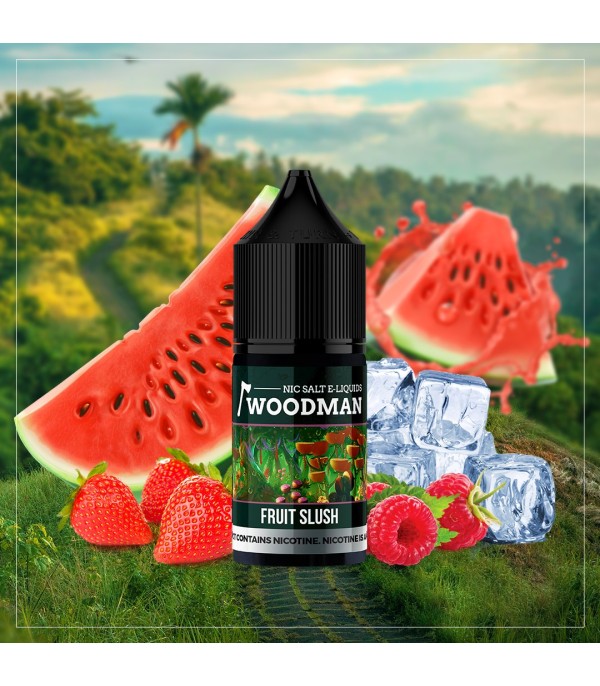 Woodman Fruit Slush Salt Likit şişe, karpuz, çilek ve ahududu meyveli.